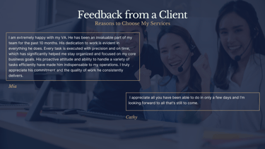 You can collaborate with your VA for as short or as long as your project requires, whether it's a one-time task or an ongoing partnership. The flexibility is yours!