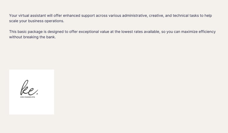 Your virtual assistant will offer enhanced support across various administrative, creative, and technical tasks to help scale your business operations.